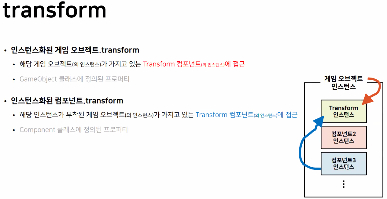 GameObject, Transform 란 유니티에서 미리 만들어 놓은 클래스
