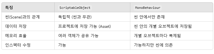 ScriptableObject 상속은 데이터를 효율적으로 관리하고 공유하는 강력한 도구.